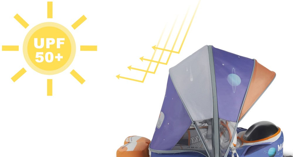 As the best outdoor swim float for infants, coming with a UPF 50+ sun canopy is the basic. The removable canopy of Mambobabysolid baby swim float has mesh sides and offers SunSmart UV Protection 50+.