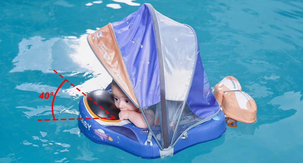 HECCEI Mambobaby Baby Swim Float comes with a removable canopy. The removable assemble UV-PROOF canopy sun canopy covered with UPF 50+ sunscreen coating protects baby’s skin away from the sun. Make baby enjoy the swimming fun in summer.