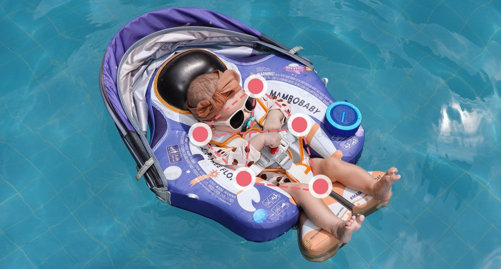 The safety buckle of Mambobaby swimming float with soft material. It is not only kept safe for your baby but lets baby backstroke or breaststroke with different buckle methods.