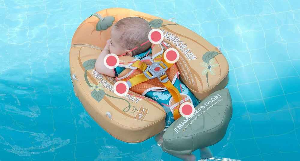The Non-inflatable MamboBaby Swim Ring Float vest-type close-fitting design, wider straps are more comfortable, strengthens the position of the squat and supports the abdomen to prevent it from falling backward or flipping.