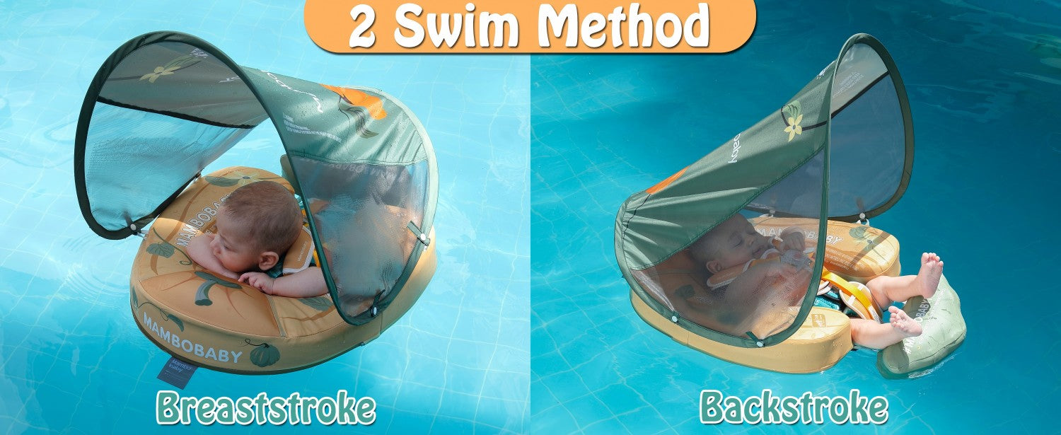 HECCEI Mambobaby Baby Swim Float comes with a removable canopy. The removable assemble UV-PROOF canopy sun canopy covered with UPF 50+ sunscreen coating protects baby’s skin away from the sun. Make baby enjoy the swimming fun in summer.