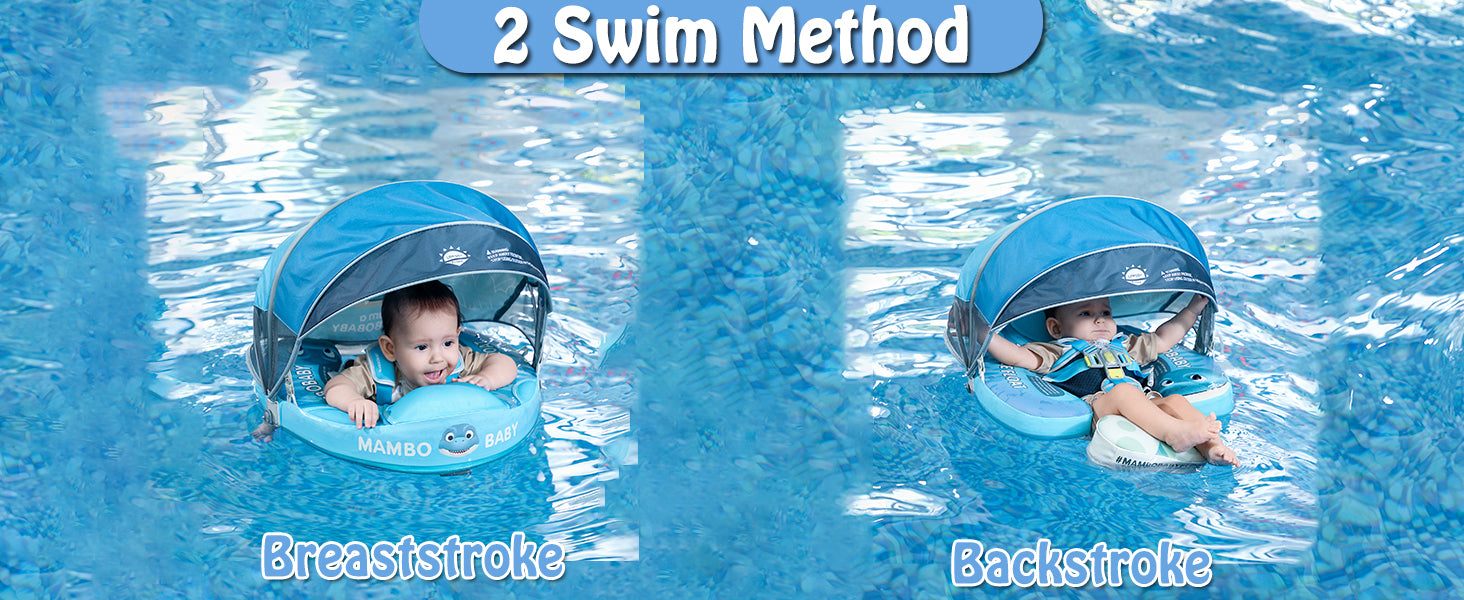 【360° FULL PROTECTION】Add removable tail, Prevent baby from flipping backward. Upgraded safety buckle, The Upgraded safety buckle provides 5 support points and a perfect 40°angle to keep a balance to avoid the baby flipping over and falling off. Upgraded into 2 swim ways which are backstroke and breaststroke with different buckle method. Backstroke Suitable for 3~6months baby, breaststroke Suitable for 3~24months baby.