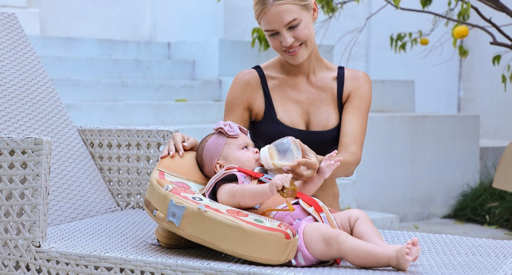 When the baby is lying on the swim float, being able to maintain the post of breaststroke all the time, cultivate your baby's correct swimming posture.